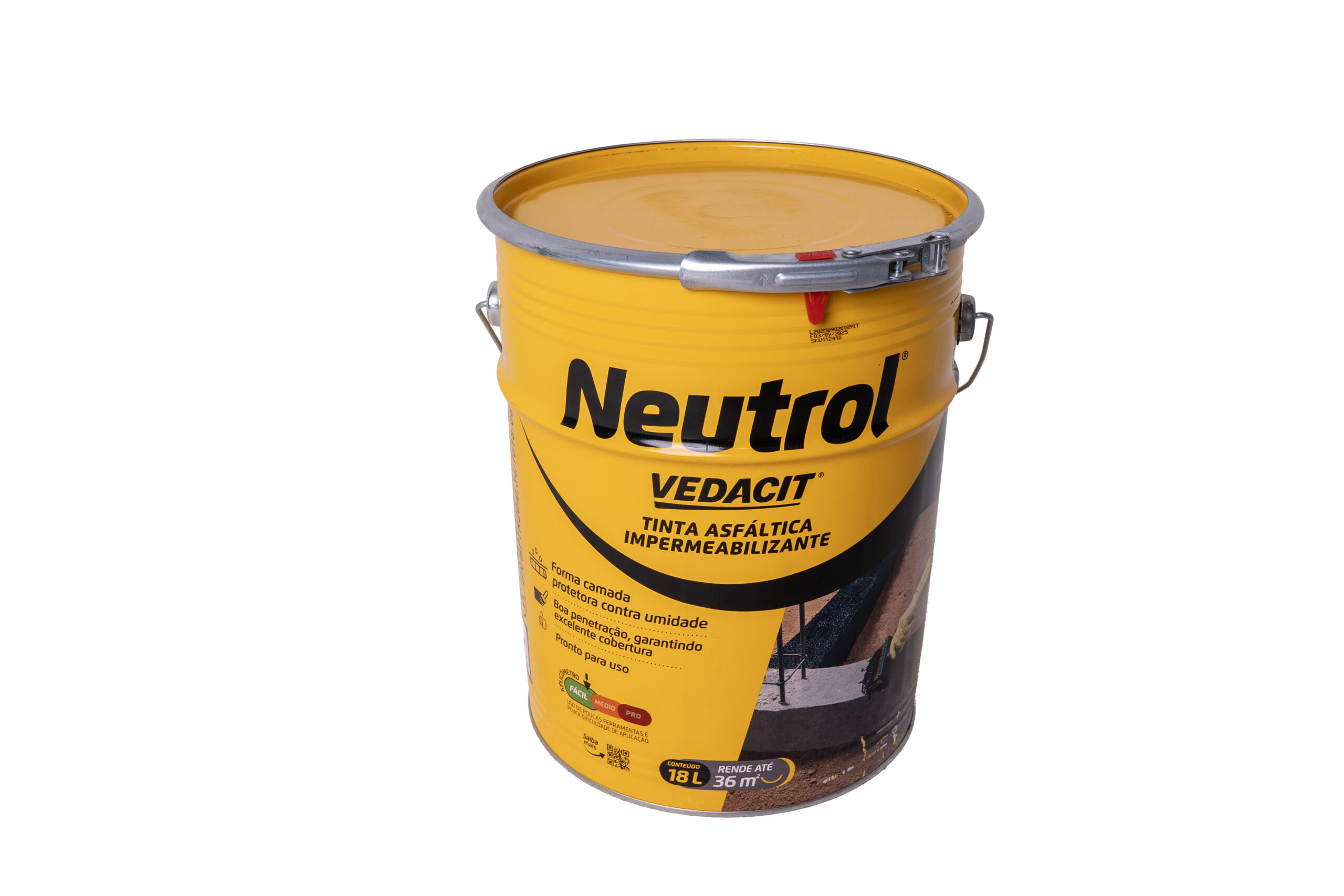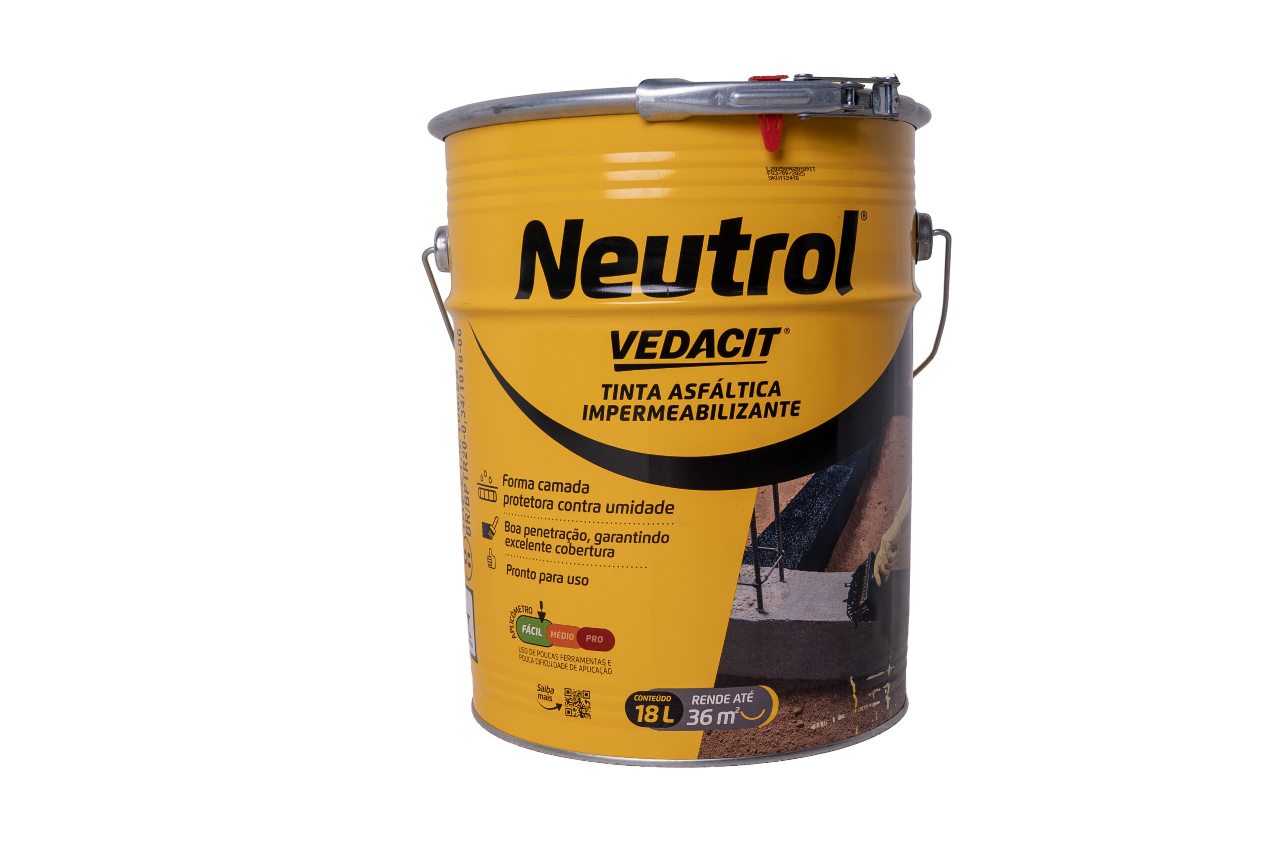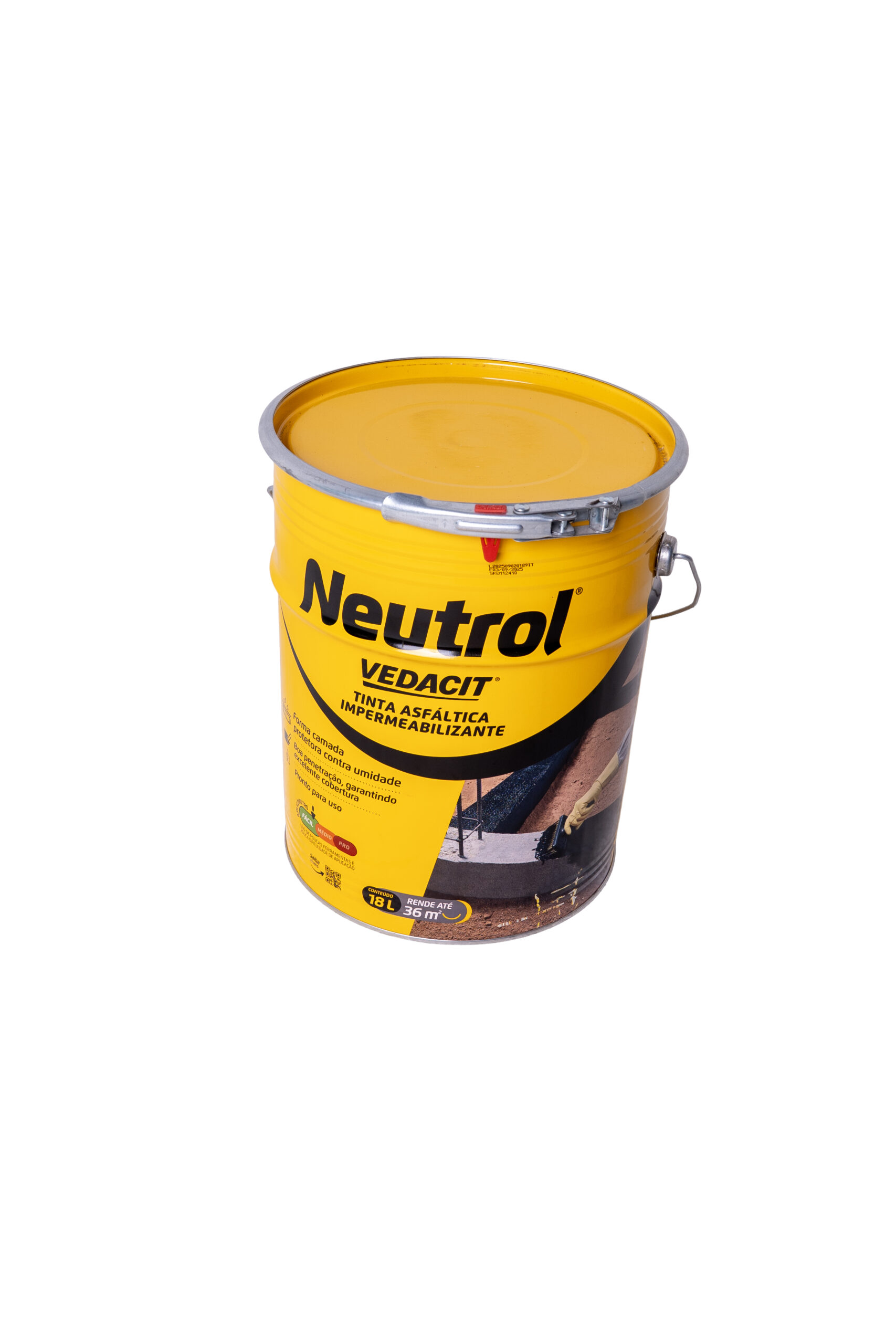 Impermeabilizante asfáltico de alta resistência, indicado para proteção de estruturas enterradas, alicerces, muros de arrimo e superfícies sujeitas à umidade. Forma uma película impermeável e durável após a secagem.
