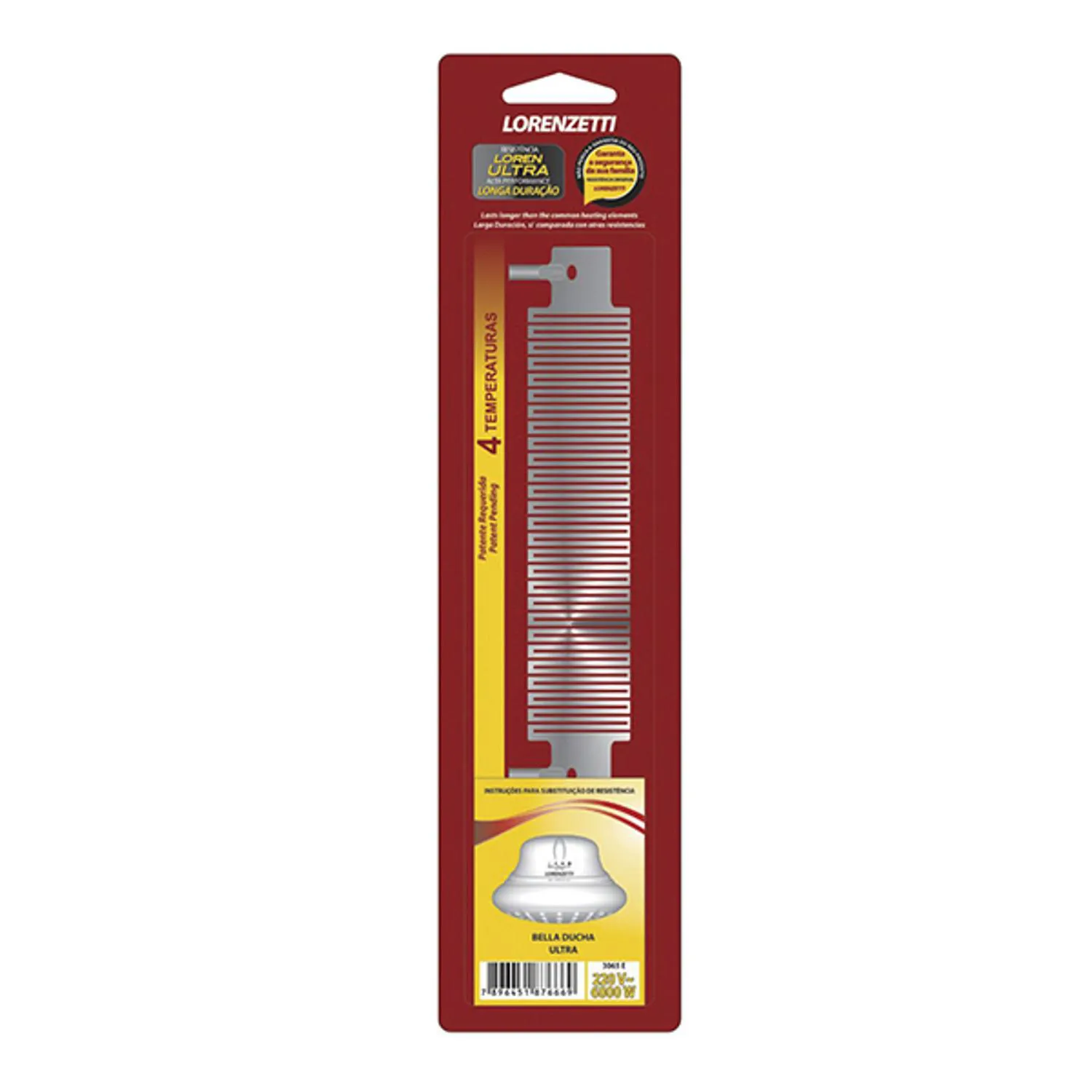 Resistência de reposição compatível com os modelos Advanced e Top Jet, com potência de 7500W e tensão de 220V. Proporciona aquecimento rápido e eficiente, garantindo ótimo desempenho e conforto no banho.